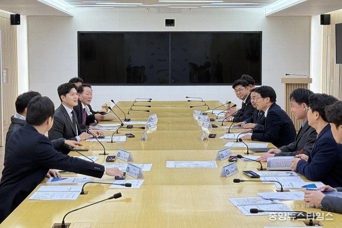 (중앙뉴스타임스 = 방재영 기자) 김용태 국회의원(경기 포천·가평, 국민의힘)은 10일 경기도청 북부청사를 방문해 김대순 경기도 행정2부지사와 함께 경기북부 지역의 도로 개선 및 교통 인프라 확충 방안을 논의했다.