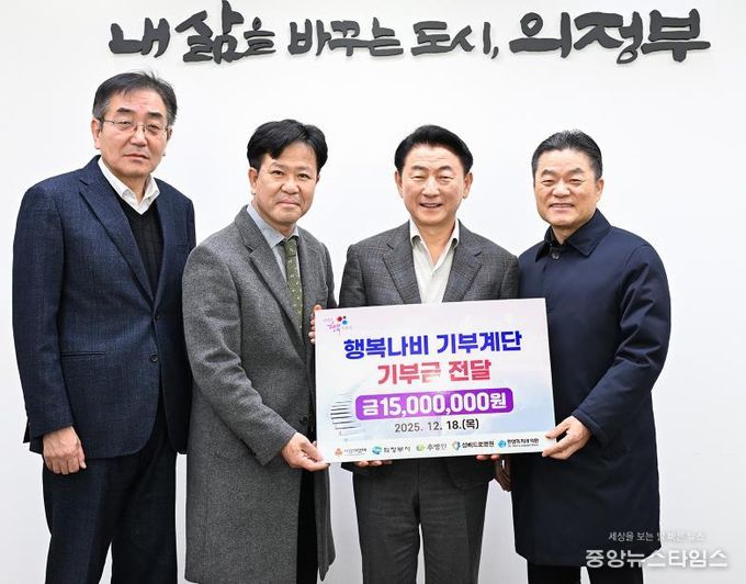 (중앙뉴스타임스 = 방재영 기자) 의정부시는 18일 시장실에서 ‘행복나비 기부계단 기부금 전달식’을 진행했다.