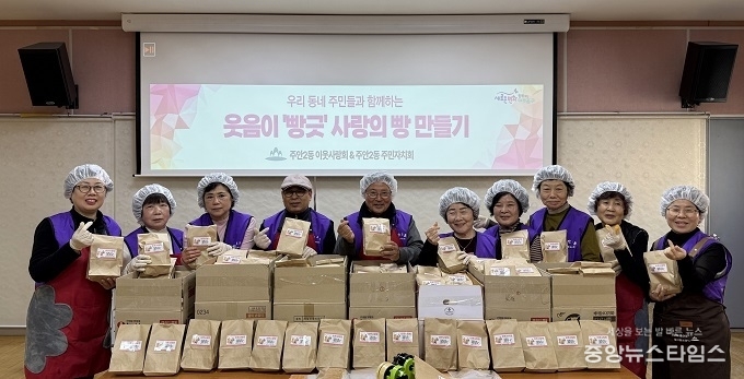 (중앙뉴스타임스 = 방재영 기자) 인천 미추홀구 주안2동 이웃사랑회와 주민자치회(회장 박호양)는 19일 지역 내 이웃돕기의 일환으로 웃음 ‘빵긋’ 사랑의 빵 만들기 행사를 진행했다.