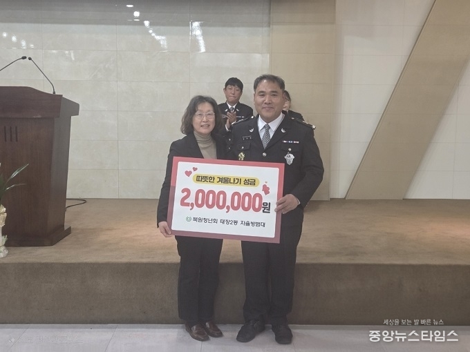 (중앙뉴스타임스 = 방재영 기자) 원주시 북원청년회 태장2동 자율방범대(대장 김주범)는 지난 18일 태장2동 행정복지센터에 관내 어려운 이웃을 위한 따뜻한 겨울나기 성금 200만 원을 전달했다.