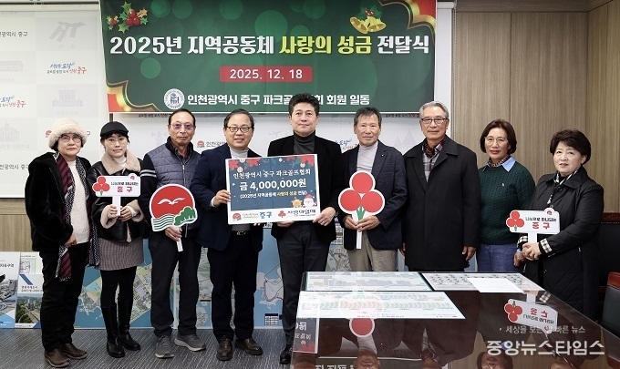 (중앙뉴스타임스 = 방재영 기자) 인천 중구는 지난 18일 ‘인천 중구 파크골프협회(회장 조고호)’가 지역 취약 계층 지원을 위해 지역공동체 사랑의 성금 400만 원을 기탁했다고 밝혔다.
