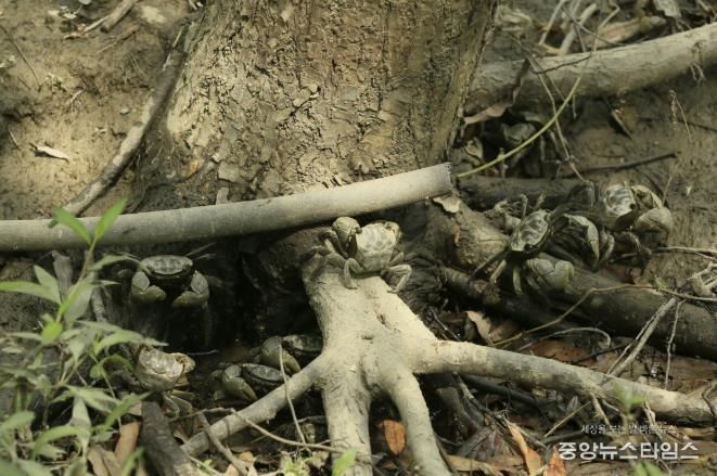 여름철 습지 바닥을 누비던 말똥게는 겨울이면 굴속으로 들어가 활동을 멈추지만, 그들이 남긴 굴과 토양 구조, 영양분은 버드나무 숲의 생장을 돕는다. 이렇게 형성된 숲은 다시 철새와 야생동물의 은신처가 된다.