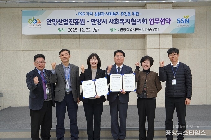 (중앙뉴스타임스 = 방재영 기자) 안양시사회복지협의회(회장 김광진)는 지난 22일 안양산업진흥원(이사장 최대호)을 방문해 지역사회공헌을 위한 업무협약을 체결했다.