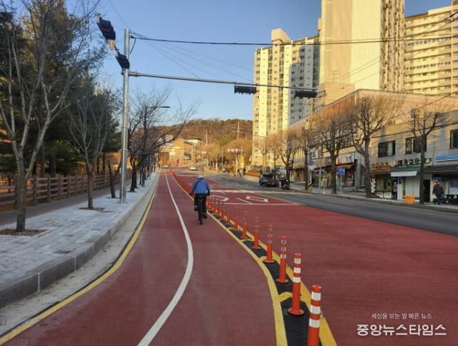 (중앙뉴스타임스 = 방재영 기자) 수원특례시가 광교산로 교통 혼잡을 줄이기 위한 도로 확장 공사와 자전거도로 조성 공사를 마무리했다.