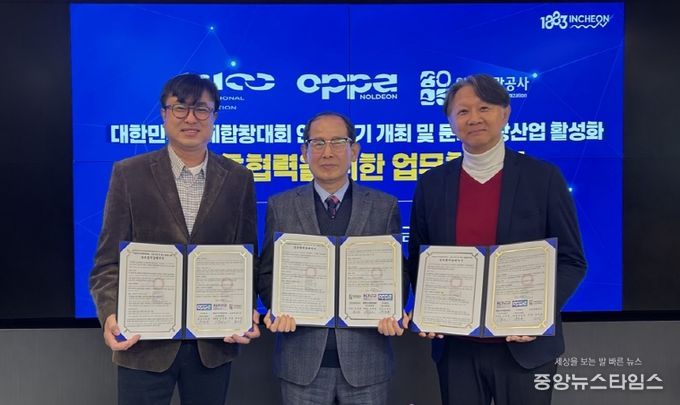 (중앙뉴스타임스 = 방재영 기자) 인천관광공사(사장 유지상)와 대한민국국제합창대회 조직위원회(위원장 김희철), ㈜놀던오빠들(대표 김준호)은 26일 인천관광공사에서 ‘대한민국국제합창대회 인천 개최(2026년~2030년) 및 문화관광 활성화’를 위한 업무협약을 체결했다.
