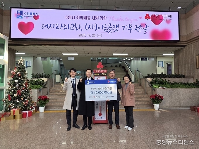 (중앙뉴스타임스 = 방재영 기자) 더사랑의교회가 설립한 사회복지법인 ‘이음플랫’이 “취약계층 지원을 위해 사용해달라”며 26일 1000만 원을 수원시에 기부했다. 기부금은 사회복지공동모금회에 지정기탁 방식으로 수원시 취약계층 지원에 사용할 예정이다.