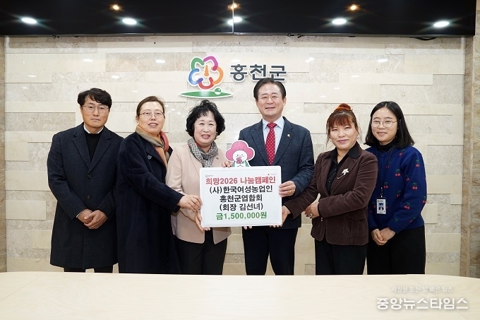 (중앙뉴스타임스 = 방재영 기자) (사)한국여성농업인 홍천군연합회(회장 김선녀)는 26일 홍천군청을 방문해 어려운 이웃돕기 성금 150만원을 기탁했다.