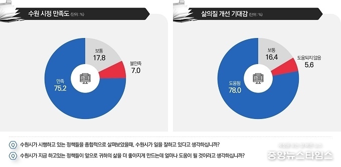 응답자 78.0%, ‘수원시 정책이 내 삶을 더 좋게 만드는 데 도움이 될 것’