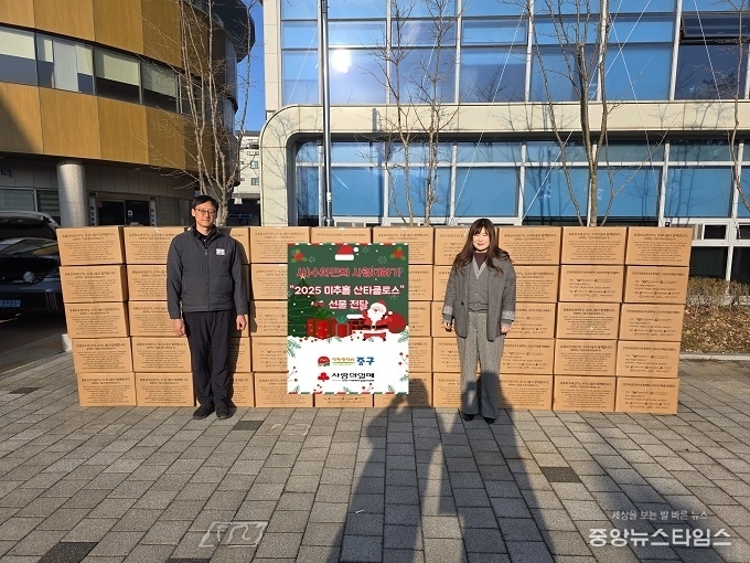 (중앙뉴스타임스 = 방재영 기자) 인천 중구는 ‘사)수와진의 사랑더하기(이사장 안상수)’가 지난 24일 크리스마스이브를 맞이해 ‘2025 미추홀 산타클로스’ 행사로 마련한 선물(겨울 이불 외 8종 세트) 50세트를 중구에 전달했다고 밝혔다.
