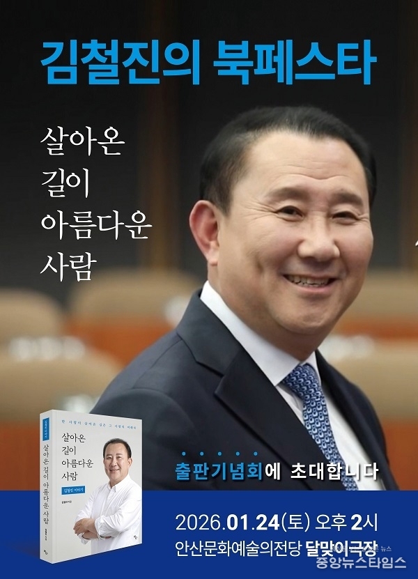 (중앙뉴스타임스 = 방재영 기자) 김철진 경기도의원(더불어민주당, 안산)이 2026년 1월 24일 오후 2시, 안산문화예술의전당 달맞이극장에서 김철진의 이야기 ‘살아온 길이 아름다운 사람’ 출판기념회를 개최한다고 30일 밝혔다.