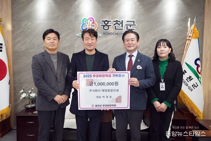 (중앙뉴스타임스 = 방재영 기자) 주식회사 태양종합인쇄(대표 박정호)는 30일 홍천군 인재육성을 위한 무궁화장학금 100만 원을 기탁했다.