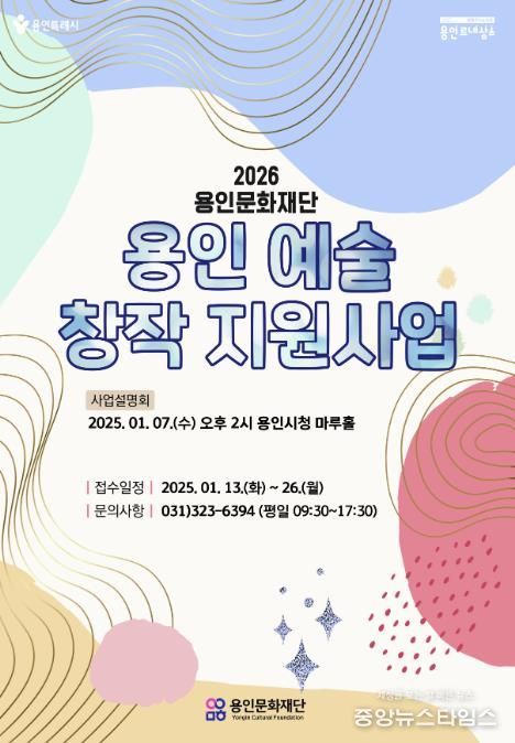 (중앙뉴스타임스 = 방재영 기자) 용인문화재단은 기존'문화 예술 공모 지원사업'을 전면 개편하고, 사업명을 ‘2026 용인 예술 창작 지원’으로 변경해 새롭게 전환한다고 밝혔다. 이번 사업은 지난 6일 공고됐으며, 1월 13일부터 26일까지 접수를 통해 총 6억 400만 원의 지원금을 사업 유형과 규모에 따라 차등 지원할 예정이다.