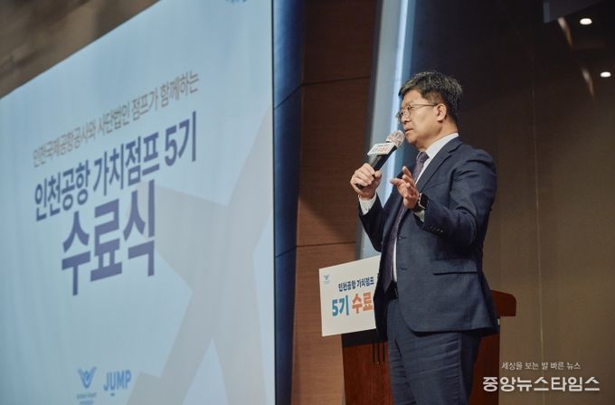 이날 수료식에는 인천국제공항공사 신가균 경영본부장을 포함해 이번 5기 가치점프 프로그램에 참여한 대학생 교육봉사자, 지역아동센터 청소년 및 교사 등 110여 명이 참석했다.