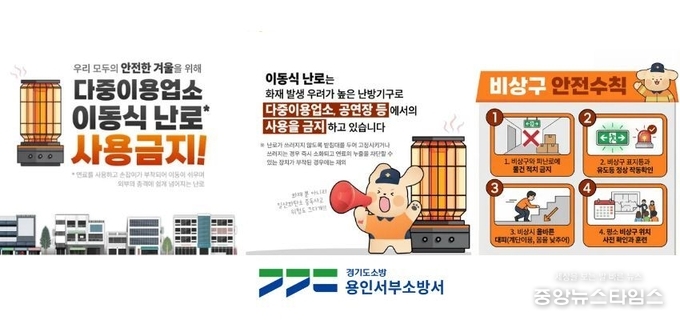(중앙뉴스타임스 = 방재영 기자) 용인서부소방서(서장 오은석)는 겨울철 한파로 난방 수요가 증가하는 시기를 맞아 카페·음식점·독서실·사우나 등 다중이용업소에서의 이동식 난로 사용 금지·피난로·비상구 확보를 통한 안전한 대피 환경 조성을 위한 협조를 당부했다.