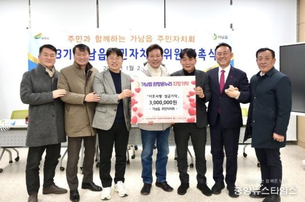 이에 임영석 가남읍장은 “지역사회를 위해 늘 헌신해 주시는 주민자치회 위원 여러분께 진심으로 감사드린다”며 “기탁해 주신 소중한 성금은 도움이 필요한 이웃들에게 소중히 전달될 수 있도록 하겠으며, 앞으로도 민관이 함께하는 따뜻한 가남읍을 만들어 나가겠다”고 전했다.