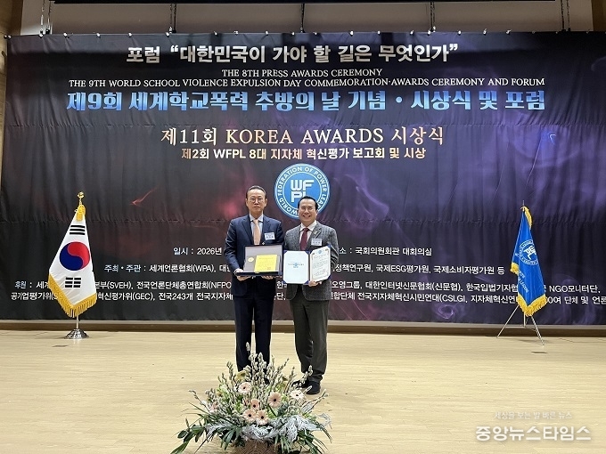(중앙뉴스타임스 = 방재영 기자) 경기도의회 농정해양위원회 이오수 의원(국민의힘, 수원9)은 28일 국회의원회관 대회의실에서 열린 ‘제11회 KOREA AWARDS 시상식’에서 ‘제2회 WFPL 8대 지자체 혁신평가 대상(大賞)’을 수상했다.
