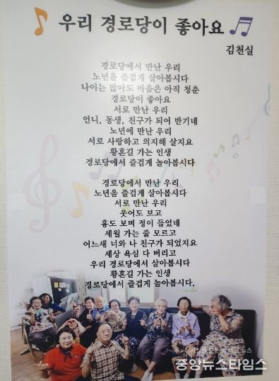 (중앙뉴스타임스 = 방재영 기자) 강릉시 동남아파트 경로당의 김천실 전 회장이 전국 최초로 경로당 생활의 즐거움을 담은 이른바 ‘경로당송 '우리 경로당이 좋아요'’을 제작해 화제가 되고 있다.