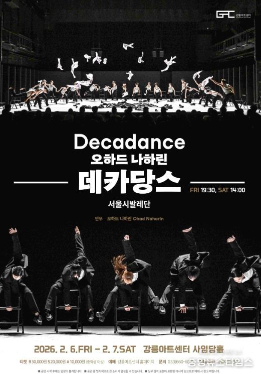한편, 강릉아트센터는 이번 서울시발레단의 '데카당스' 공연을 시작으로 국립발레단(3·5월), 유니버설발레단(11월) 둥 국내를 대표하는 발레단들과 함께하는 기획공연을 순차적으로 선보일 예정이다.