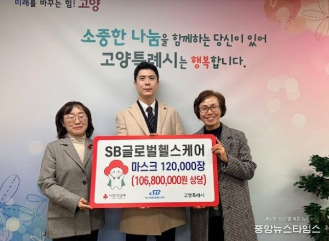 SB글로벌헬스케어는 총 1억 6백 8십만 원 상당의 마스크 12만장을 기부했으며, 전달받은 마스크는 사회복지공동모금회를 통해 고양시 관내 사회복지기관 28개소에 지난 1월 26일 배분됐다.