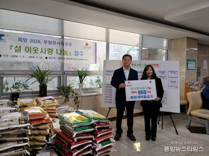(중앙뉴스타임스 = 방재영 기자) 청천새마을금고는 지난 5일 ‘설 이웃사랑 나눔’을 위한 백미 860kg을 인천 부평구 청천2동 행정복지센터에 전달했다.