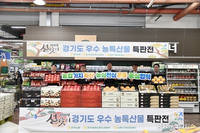 (중앙뉴스타임스 = 방재영 기자) 농협 경기본부는 10일 농협수원유통센터에서 양성농협 김윤배 조합장, 수원유통센터 민선홍 지사장과 함께 ‘2026년 설맞이 경기도 우수농특산물 특판전’을 개최했다.