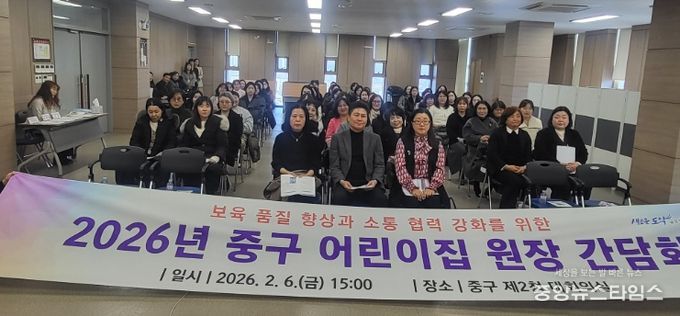 (중앙뉴스타임스 = 방재영 기자) 인천 중구는 병오년 새해를 맞아 영종국제도시 지역 보육 현장의 의견을 수렴하고 지역 맞춤형 보육 정책을 마련하고자 지난 6일 중구 제2청 대회의실에서 ‘2026년 중구 어린이집 원장 간담회’를 개최했다.