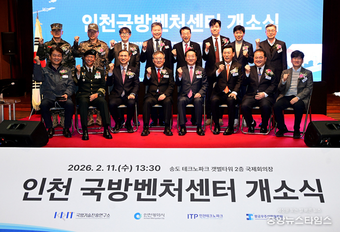 (중앙뉴스타임스 = 방재영 기자) 인천시는 11일 송도동 갯벌타워에서 인천국방벤처센터 개소식을 개최하고,‘국방·항공·첨단산업을 선도하는 글로벌 혁신도시 인천’이라는 인천형 국방산업 비전을 공식 선포했다.