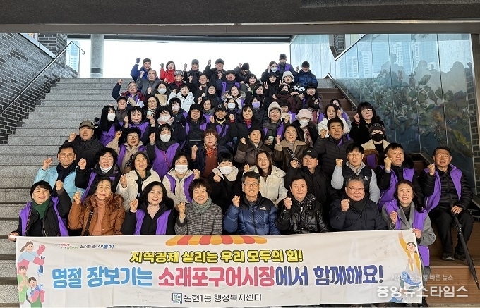 (중앙뉴스타임스 = 방재영 기자) 인천 남동구 논현1동 행정복지센터는 설을 앞두고 자생 단체 회원 및 지역 주민들과 소래포구 전통어시장 장보기 행사를 개최했다고 11일 밝혔다.