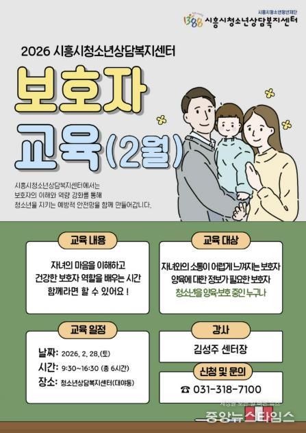 (중앙뉴스타임스 = 방재영 기자) 시흥시청소년청년재단 산하기관인 시흥시청소년상담복지센터가 보호자의 이해와 역할 강화를 통해 청소년을 지키는 예방적 안전망을 구축하고자 2026년부터 보호자 교육을 정기적으로 운영하고 있다.