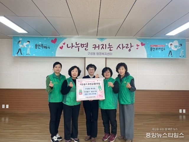 또, 구성동새마을부녀회는 구성동에 50만원을 기탁했고, 구성용인대아이캔태권도장 관원들도 25만원을 기탁했다.