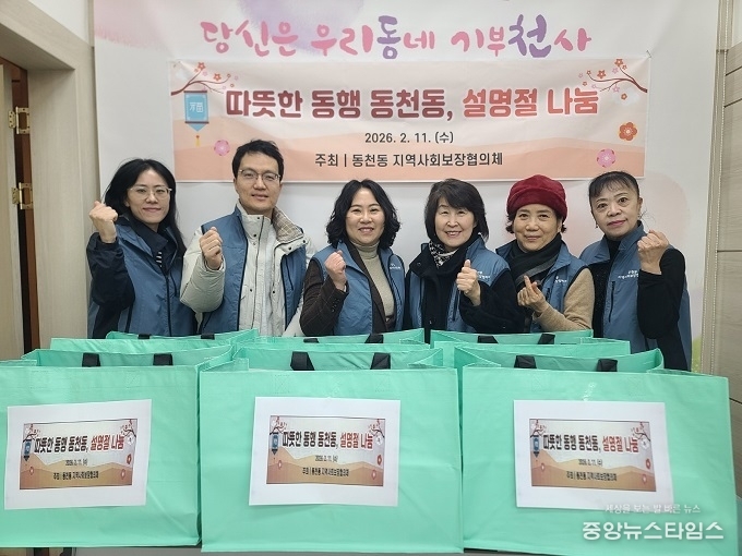 수지구 동천동 지역사회보장협의체는 취약계층 20가구에 황태와 떡국떡, 밑반찬을 꾸러미로 만든 명절 선물을 11일 전달했다.