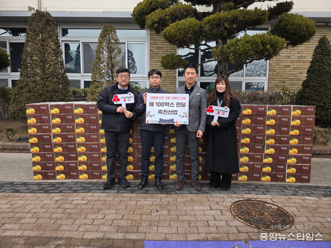 (중앙뉴스타임스 = 방재영 기자) 인천 중구는 최근 측천산업(대표 김종석)이 지역 내 어려운 이웃을 돕기 위한 배 100박스를 기탁했다고 20일 밝혔다.