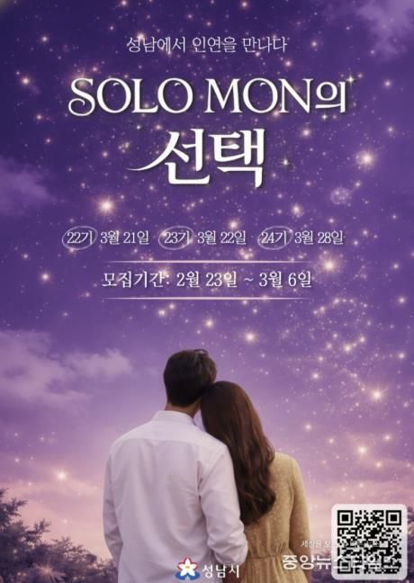 (중앙뉴스타임스 = 방재영 기자) 성남시가 4년째 진행 중인 미혼 남녀 만남 행사 ‘솔로몬(SOLO MON)의 선택’ 인기가 여전한 것으로 나타났다.