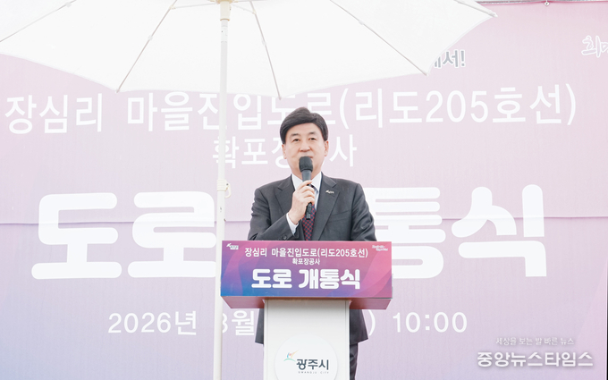 (중앙뉴스타임스 = 방재영 기자) 광주시는 18일 곤지암읍 장심리 지역 마을안길의 교통혼잡 해소와 주거환경 개선을 위해 추진한 ‘장심리 마을 진입도로(리도205호선) 확‧포장 공사’ 개통식을 열었다.