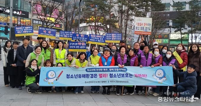 (중앙뉴스타임스 = 방재영 기자) 파주시는 개학기를 맞아 지난 18일 금릉역 인근 학교 주변과 번화가에서 민관이 합동해 유해환경을 점검하고 청소년 보호 홍보 활동을 실시했다.