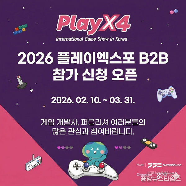 (중앙뉴스타임스 = 방재영 기자) 경기도가 주최하고 경기콘텐츠진흥원(이하 경콘진)과 킨텍스가 공동 주관하는 ‘2026 플레이엑스포(PlayX4)’가 B2B(Business to Business) 수출상담회 참가 기업 모집을 시작하며 글로벌 게임 비즈니스 지원에 본격적으로 나선다.