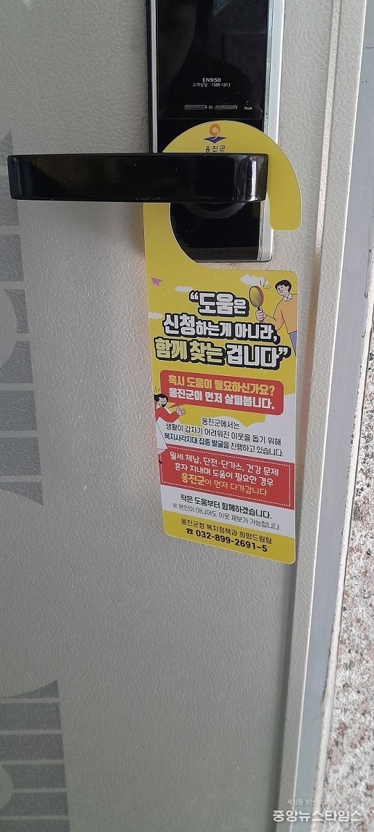 (중앙뉴스타임스 = 방재영 기자) 옹진군은 사회적 고립 및 위기가구를 조기에 발견하고 선제적으로 지원하기 위해 영흥면 빌라 밀집지역을 대상으로 전수조사를 실시한다고 27일 밝혔다.
