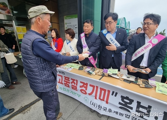 (중앙뉴스타임스 = 방재영 기자) 경기농협(총괄본부장 엄범식)은 1일 제주시농협 하나로마트 노형점에서 경기미의 우수성을 알리고 쌀 소비 촉진을 위한 홍보 및 나눔행사를 개최했다고 밝혔다.