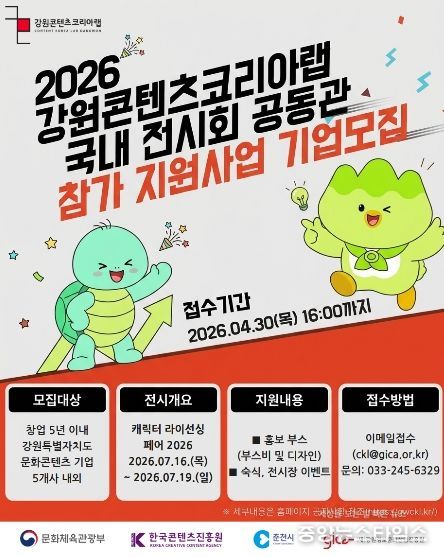 ![[포스터] 2026년 강원콘텐츠코리아랩 국내 전시회 공동관 참가 지원 사업](/data/photos/portnews/202604/20260408182145-1112.jpg)