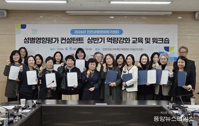 (중앙뉴스타임스 = 방재영 기자) 인천여성가족재단 성평등가족부 지정 인천성별영향평가센터는 지난 9일 재단 내 복합미디어실에서 ‘2026년 상반기 인천광역시 성별영향평가 컨설턴트 역량강화 교육 및 워크숍’을 개최했다.