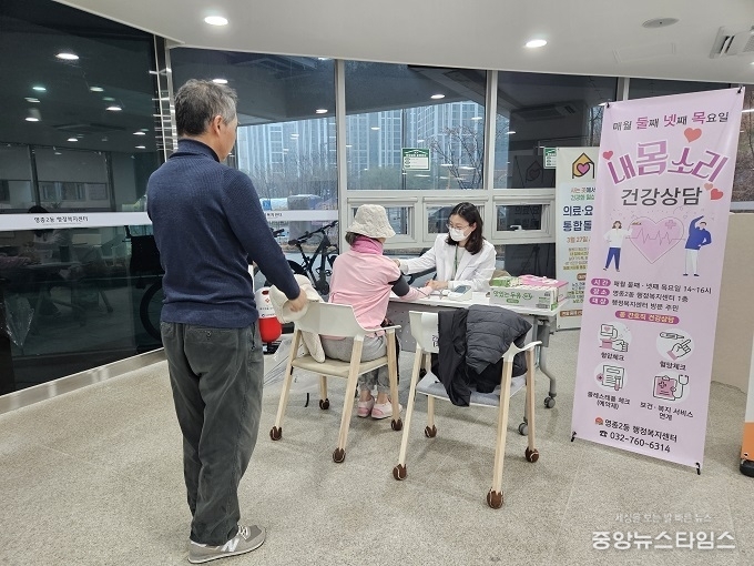 (중앙뉴스타임스 = 방재영 기자) 인천 중구 영종2동 행정복지센터는 주민들의 건강관리를 지원하기 위해 ‘내몸목소리 건강상담’을 운영하고 있다고 13일 밝혔다.