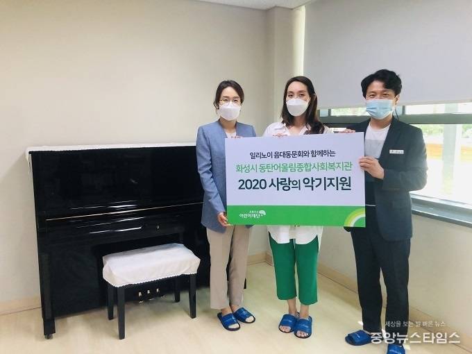 화성시동탄어울림종합사회복지관(관장 최성규)은 일리노이 음대 동문회와 초록우산 어린이재단 경기지역본부(본부장 김창연)가 참석한 가운에 ‘사랑의 악기’지원 사업 전달식을 가졌다고 밝혔다. 이날 전달한 후원금은 지난 6월 일리노이 음대동문회 주최로 열린 ‘제 13회 사랑의 악기보내기 음악회’수익금으로 마련한 것으로, 일리노이 음대 동문회는 문화 소외계층 아동을 위해 2007년부터 꾸준히 음악회를 개최해오고 있으며 그 수익금을 기부하고 있다.