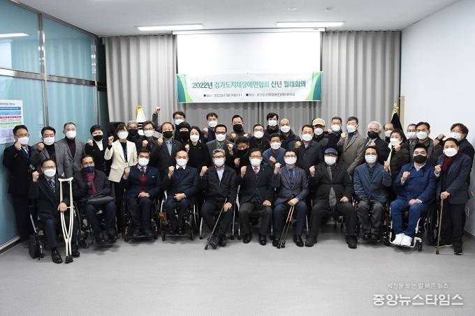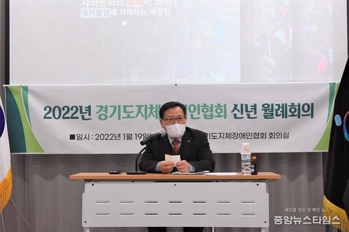 (중앙뉴스타임스 = 방재영 기자) 경기도지체장애인협회(이하 경기협회, 협회장 김기호)는 지난 19일 경기도지체장애인협회 대회의실에서 한국지체장애인협회 김광환 중앙회장, 한국장애인고용안정협회 손영호 중앙회장, 지산그룹 한주식 대표이사, 31개 시군지회장 및 10개 시설장 등이 참석한 가운데 ‘2022년 경기도협회 신년 월례회의’를 개최했다.