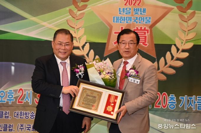 이현재 시장은 이날 ‘2022년을 빛낸 대한민국 인물 대상 시상식 조직위원회’가 한국프레스센터에서 개최한 ‘2022년을 빛낸 대한민국 인물 대상’ 시상식에서 지방자치 혁신행정 부문 대상을 받았다.