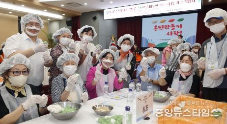 (중앙뉴스타임스 = 이광운 기자) 과천시와 과천종합사회복지관은 추석 명절을 앞둔 19일, 시청 대강당에서 신계용 과천시장을 비롯한 봉사자 등 시민 150여 명이 모여 지역 내 취약계층 가정에 전달할 송편을 빚는 행사를 가졌다.