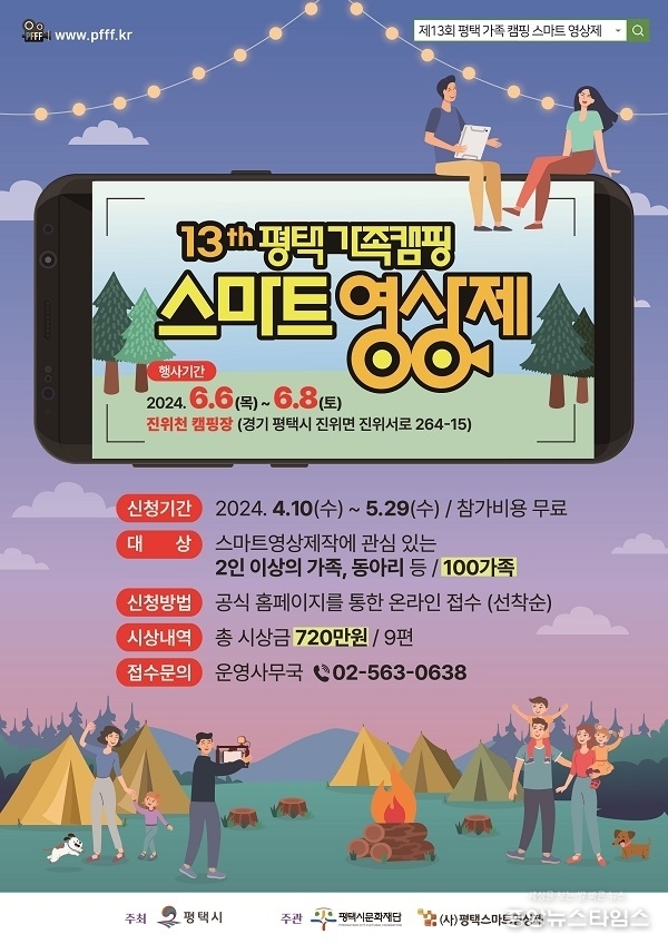 (중앙뉴스타임스 = 방재영 기자) 가족과 함께하는 지역 대표축제로 자리 잡으며 올해로 13회를 맞이한 ‘평택 가족캠핑 스마트영상제’가 오는 6월 6일부터 8일까지 2박 3일간 진위천유원지 캠핑장에서 진행된다.