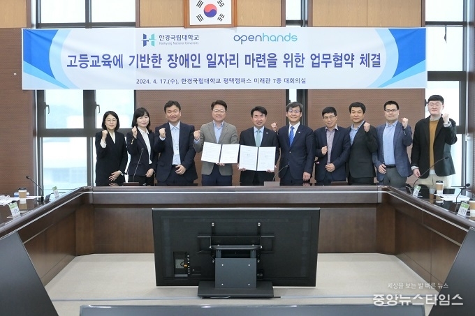 (중앙뉴스타임스 = 방재영 기자) 한경국립대학교(총장 이원희)는 17일 오픈핸즈(대표이사 전종민)와 장애인 일자리 마련과 취업률 제고를 위한 업무협약을 체결했다.