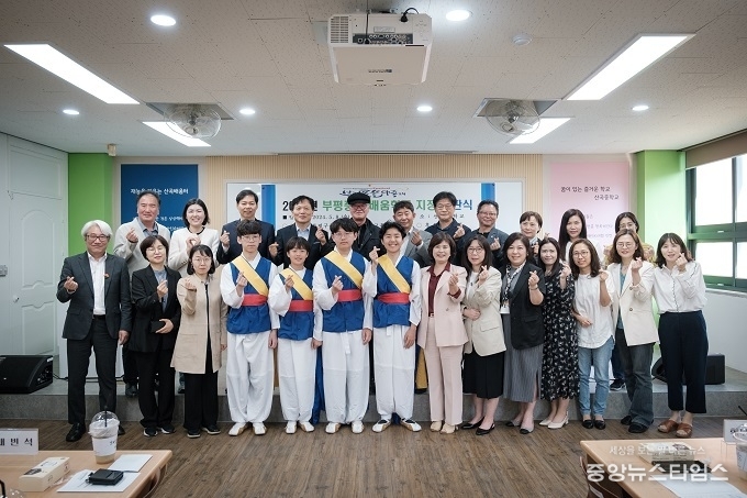 (중앙뉴스타임스 = 방재영 기자) 인천 부평구 축제위원회와 인천북부교육지원청은 ‘부평풍물 배움학교 지정 현판식’을 지난 8일 산곡중학교에서 개최했다.
