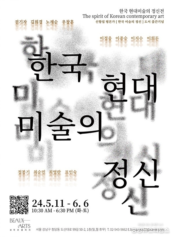 (중앙뉴스타임스 = 방재영 기자) 현존하는 한국미술계 거장들의 작품을 한자리에서 감상할 수 있는 기획전시가 서울 청담 보자르갤러리(관장 허성미)에서 열리고 있다. 신항섭 평론가는 한국 미술 작가들의 작품에 대한 예술적 가치 평가와 사실적 서술로 많은 작가들의 평론 요청을 받는 것으로 알려져 있으며, 그동안 진행된 평론을 집대성 한 '한국 현대미술의 정신' 도서를 출간하고 이를 기념하는 전시가 5월 11일~6월 6일까지 진행 중에 있다.