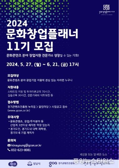 (중앙뉴스타임스 = 방재영 기자) 경기도가 문화콘텐츠 분야 창업지원 전문인력인 ‘문화창업플래너’ 11기 교육생을 6월 21일까지 모집한다고 27일 밝혔다.
